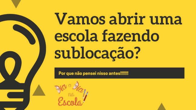 Você sabe o que é sublocação? Procure uma escola que funcione meio período ou de manhã e a tarde. Converse com a diretora desta escola e proponha sublocar o turno noturno para você. Assim, irão funcionar duas escolas no mesmo espaço, uma durante o dia e outra durante a noite. Isto é sublocação!!!! Ou seja, […]