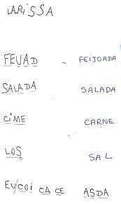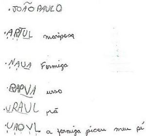 Por exemplo, quando escreve a palavra ”MÃO”, pode utilizar apenas uma letra, pautando-se na hipótese silábica, onde vai corresponder o número de letras com a quantidade de vezes que ela abriu a boca para falar, ou pode ainda utilizar dois ou três símbolos, pois não acredita que possa se escrever apenas com uma letra.